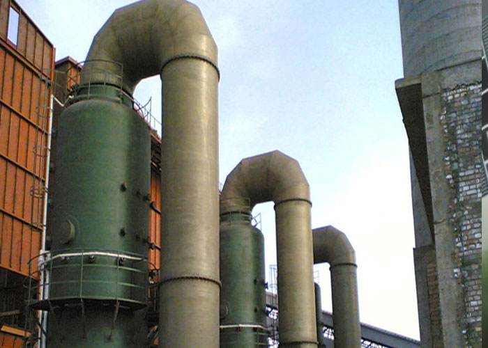 玻璃鋼脫硫塔產品優點? 1.除塵脫硫器采用分節組裝,具有占地面積小、運輸、安裝方便的特點。 2.本產品采用國內先進的復合材料和耐高溫玻璃鋼樹脂,使其增加了耐磨、耐高溫程度,大大延長了使用壽命。 3.本產品是一種側進頂出的沖擊式除塵脫硫器,使煙氣直接沖擊水面,節水并減少污染,操作維修方便,運行費用低,脫水效果好,是一種經濟實用的濕式除塵脫硫器。
