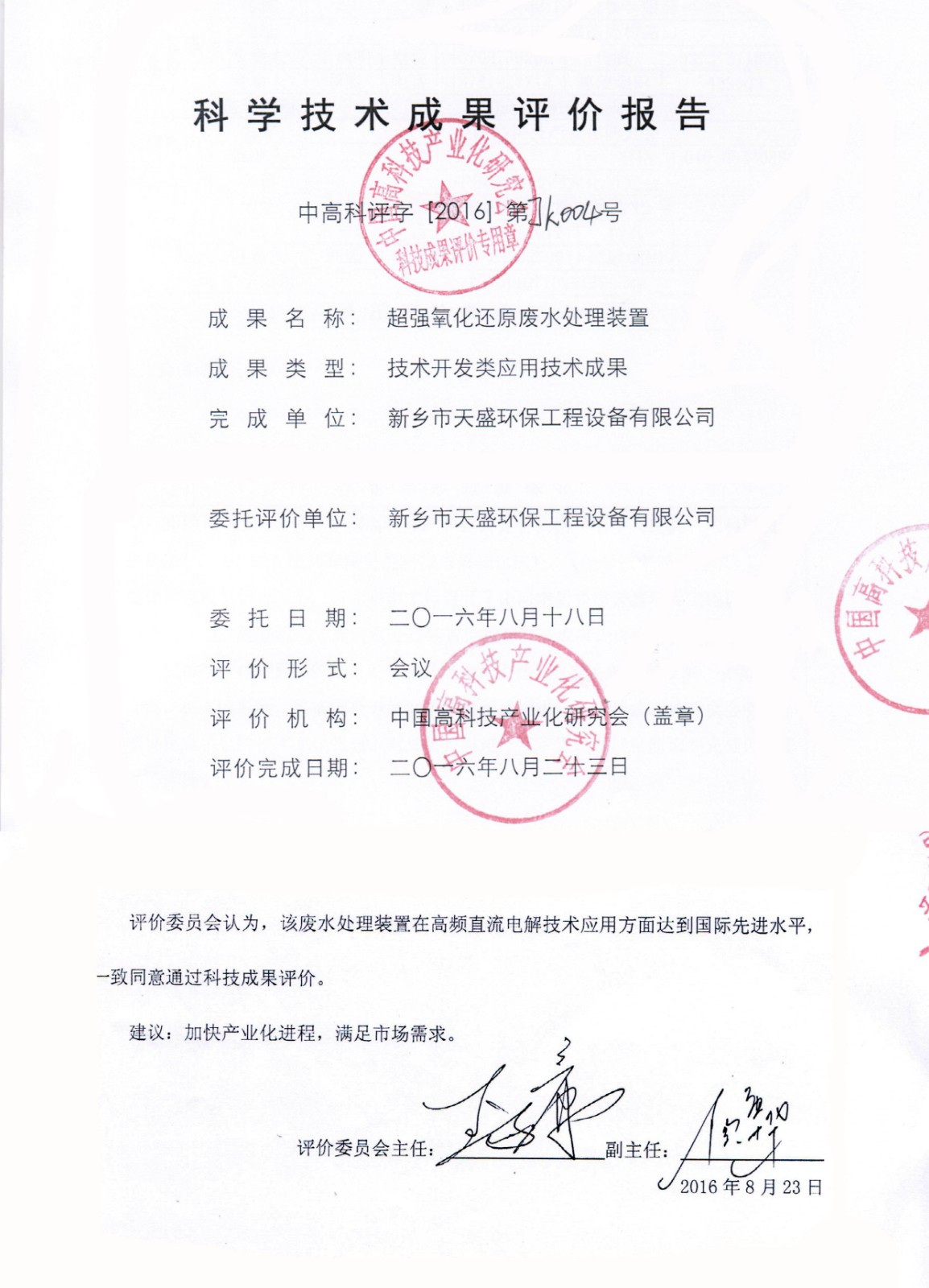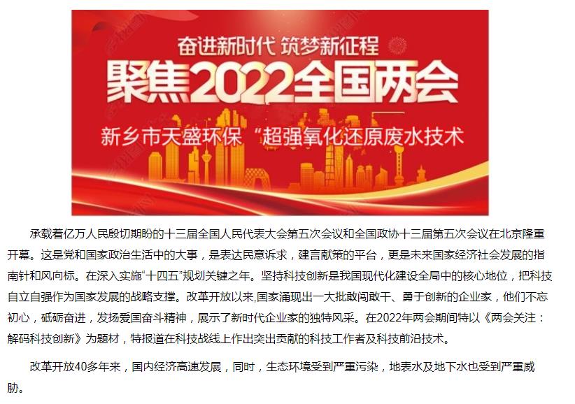 中國高新技術(shù)網(wǎng)發(fā)布:《關(guān)注:解碼科技創(chuàng)新》——新鄉(xiāng)市天盛環(huán)?!俺瑥娧趸€原廢水處理技術(shù)”