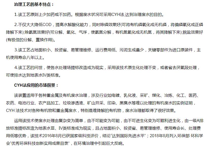 超強氧化還原廢水處理裝置(CYH法)處理各種有機廢水、各種重金屬廢水