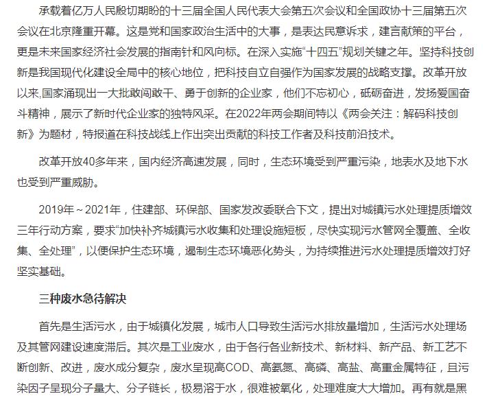 今日頭條刊登:喜迎二十大|超強氧化還原(CYH法)技術(shù),使污水處理再無后顧之憂