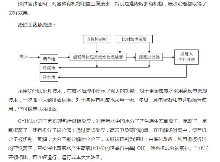 超強氧化還原廢水處理裝置(CYH法)處理各種有機廢水、各種重金屬廢水